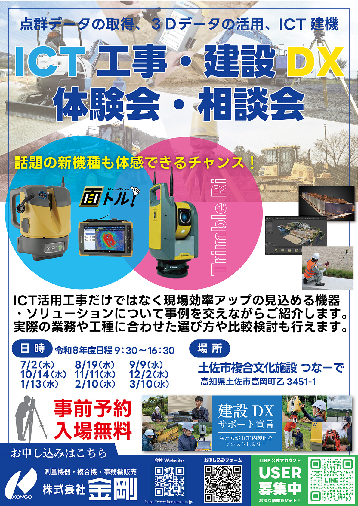 【事前予約・入場無料】ICT工事・建設DX 体験会・相談会(土佐市つなーで開催)